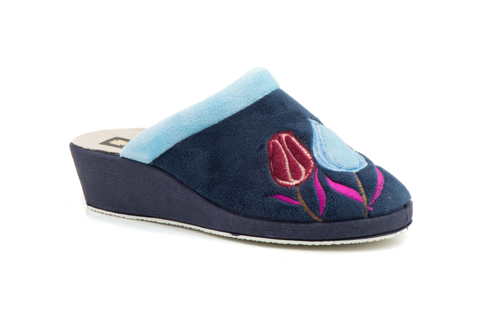Zapatillas Casa Mujer Paño Marino Tulipanes  -  Ref. 1045 Marino