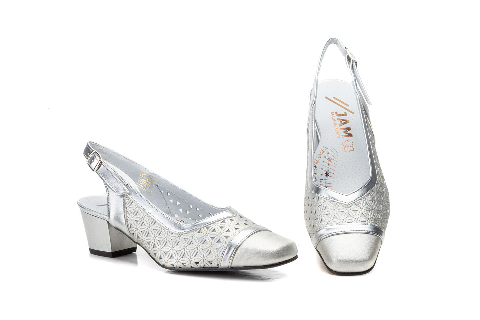 Hecho en España Zapatos Mujer Piel Picado Plata Tacón